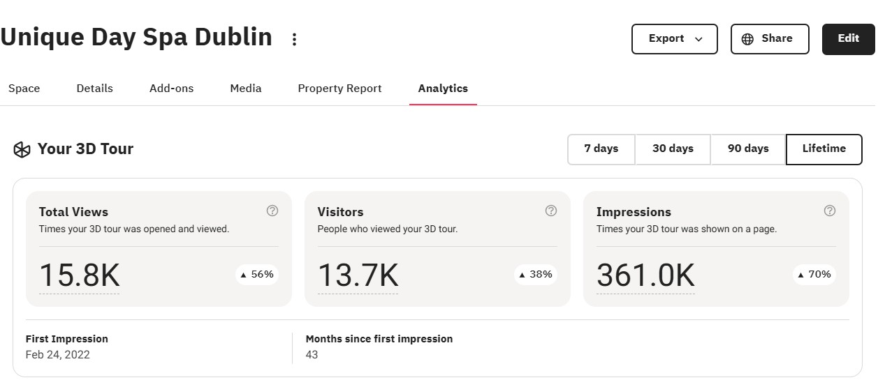 The virtual tour gives potential clients a real sense of the spa before visiting, leading to more confident bookings and longer time spent on the website.